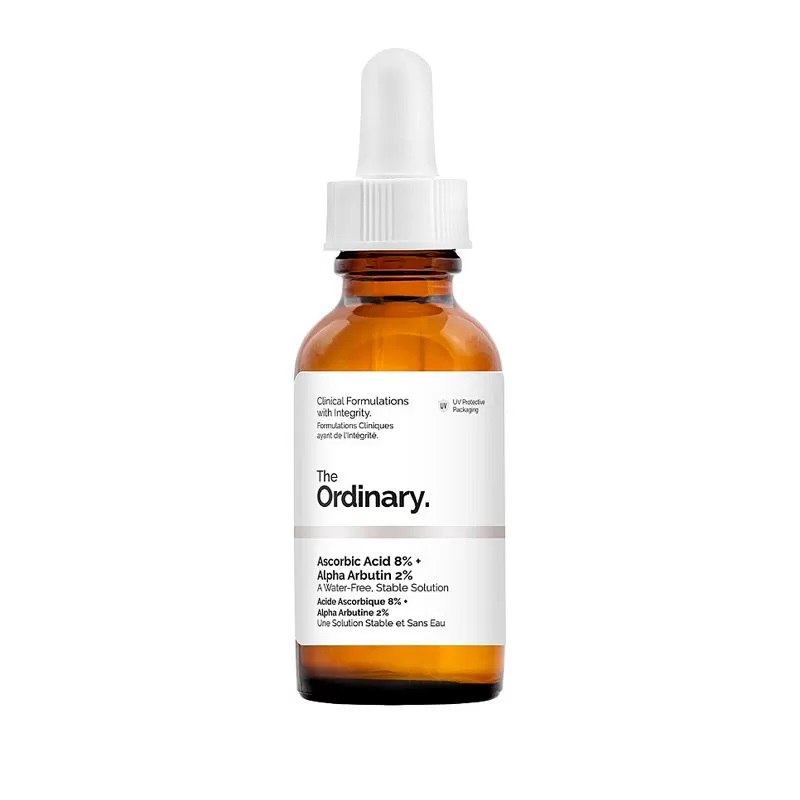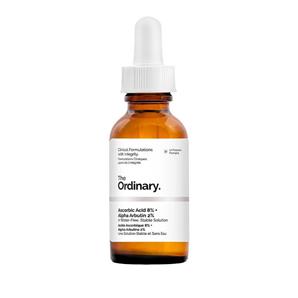 سرم آسکوربیک اسید 8% و آلفا آربوتین 2% اوردینری با حجم 30 میلی لیتر و محصول کانادا، یکی از موثر ترین سرم های روشن کننده پوست است. این سرم سرشار از ویتامین C خالص بوده و خاصیت آنتی اکسیدانی دارد و سبب محافظت از پوست می شود. سرم آسکوربیک اسید 8% + آلفا آربوتین 2% برند Ordinary با تقویت پوست، هر گونه علائم پیری و خطوط و چین و چروک ها را بهبود می دهد. این سرم لک ها و تیرگی های پوستی را به طرز چشمگیری کاهش داده و پوست را روشن و شفاف می کند.