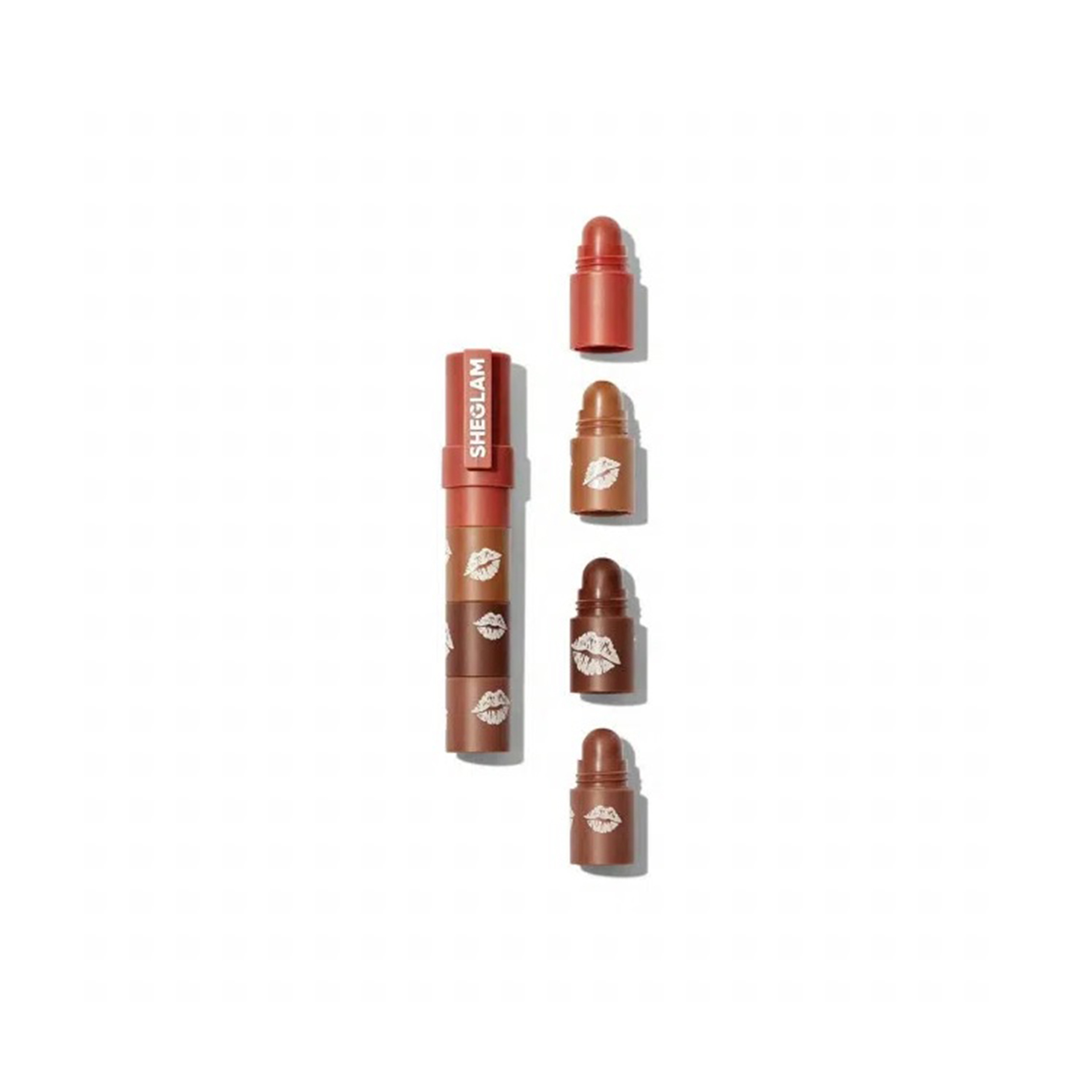 رژ لب شیگلم مدل Mega Lip Stacks رنگ Brown Brownie Stack محصولی با 4 رنگ رژلب متفاوت است که در یک بسته بندی ارائه می شود. این رژلب جامد دارای بافت نرم، کرمی و ابریشمی است که به خوبی روی لب پخش شده و جلوه ای مات و زیبا را ایجاد می کند. این لوازم آرایشی زنانه با رنگدانه های غنی و غلیظ به مدت طولانی بدون پخش شدن، روی لب ها باقی مانده و با خاصیت آبرسانی موجب شاداب شدن لب ها و جلوگیری از خشکی آن می شود. این محصول فاقد پارابن، تالک، مواد عطری و الکل بوده و بدون ایجاد حساسیت و احساس سنگینی روی لب، انتخاب مناسبی برای استفاده روزانه است.