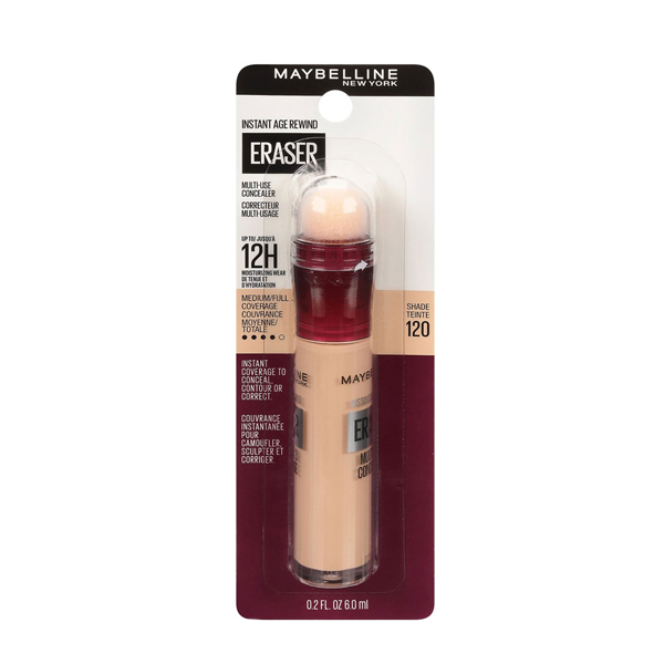 کانسیلر ایریزر میبلین Maybelline مناسب برای پوشاندن تیرگی زیر چشم و عیوب صورت مانند لک ها و کبودی ها است. این کانسیلر دارای اپلیکاتور اسفنجی است که کار استفاده از آن را آسان تر می کند. این کانسیلر قابلیت پوشانندگی بسیار بالایی دارد و لک‌های پوستی و جای جوش‌های قدیمی و تیرگی‌ها را به خوبی پوشش می‌دهد.