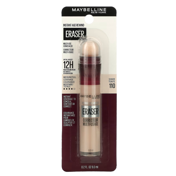 کانسیلر ایریزر میبلین Maybelline مناسب برای پوشاندن تیرگی زیر چشم و عیوب صورت مانند لک ها و کبودی ها است. این کانسیلر دارای اپلیکاتور اسفنجی است که کار استفاده از آن را آسان تر می کند. این کانسیلر قابلیت پوشانندگی بسیار بالایی دارد و لکهای پوستی و جای جوشهای قدیمی و تیرگیها را به خوبی پوشش میدهد.