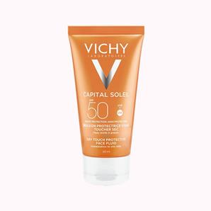 فلوئید ضد آفتاب ویشی کپیتال سولیل مدل DRY TOUCH ضد آفتاب هیپو آلرژنیک، ضد آب و مات کننده دارای بافت بسیار سبک مناسب پوست های مختلط و چرب می باشد. ضد آفتاب پوست های مختلط و چرب ویشی محافظت بالا در برابر اشعه UVB و طولانی مدت تر در برابر UVA را فراهم می کند و دارای ترکیبات معدنی چشمه معدنی و مجموعه ای از آنتی اکسیدان ها می باشد.